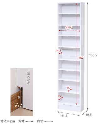 | 【外寸奥行16,5cm】1cmピッチ・壁面収納・本棚 |